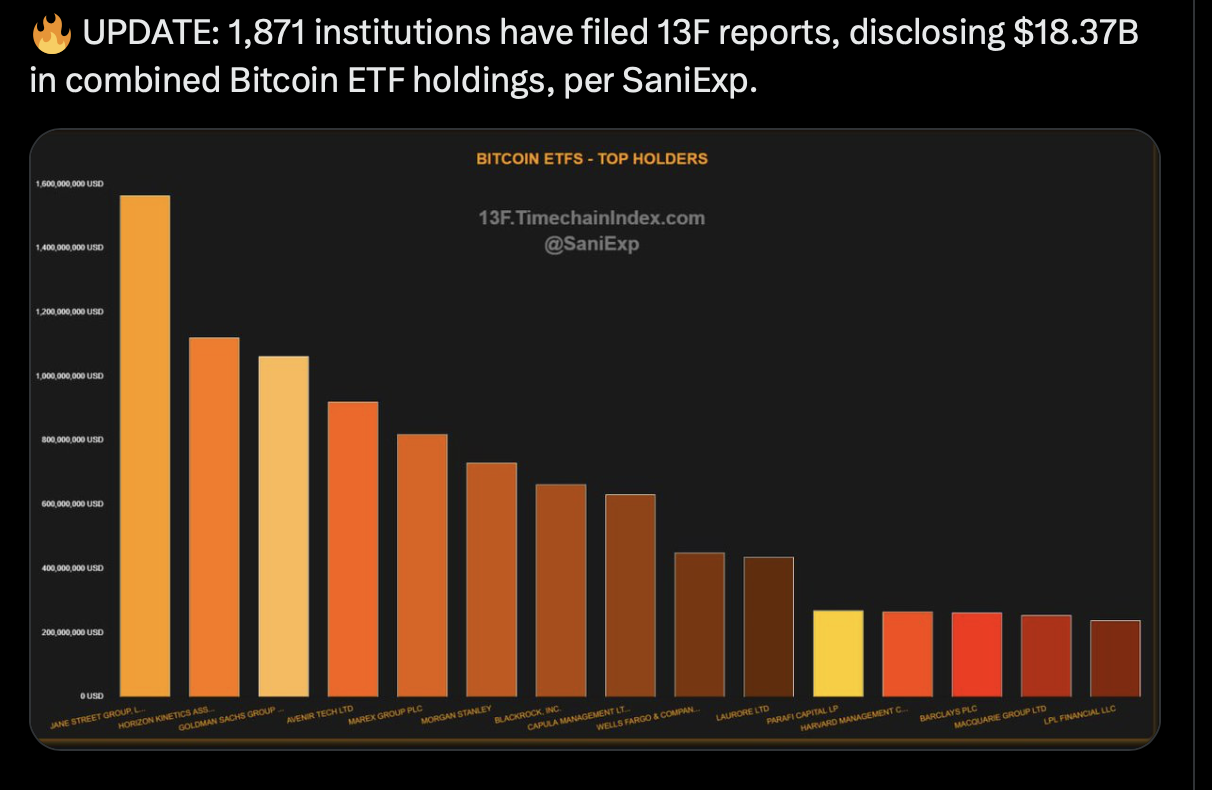The post 1,871 Institutions Now Hold $18.37B in Bitcoin ETFs – What the 13F Data Reveals appeared first on ETHNews.