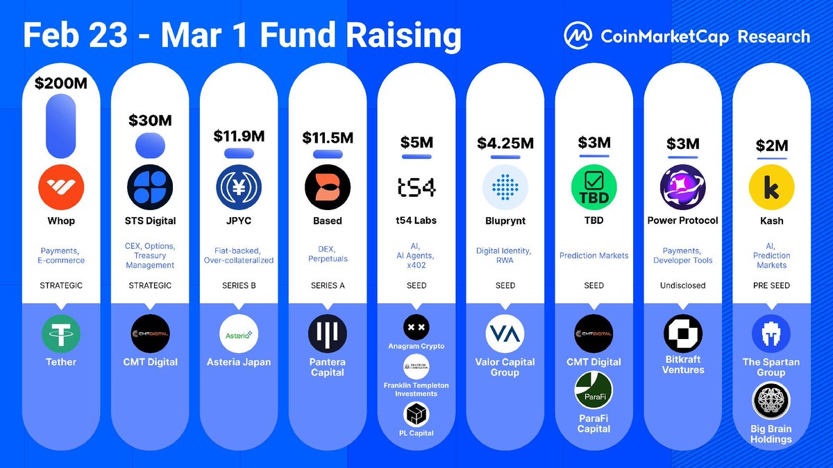 Crypto fundraising remained active between February 23 and March 1, with projects collectively securing more than $270 million across payments, AI, DeFi, and digital identity sectors.