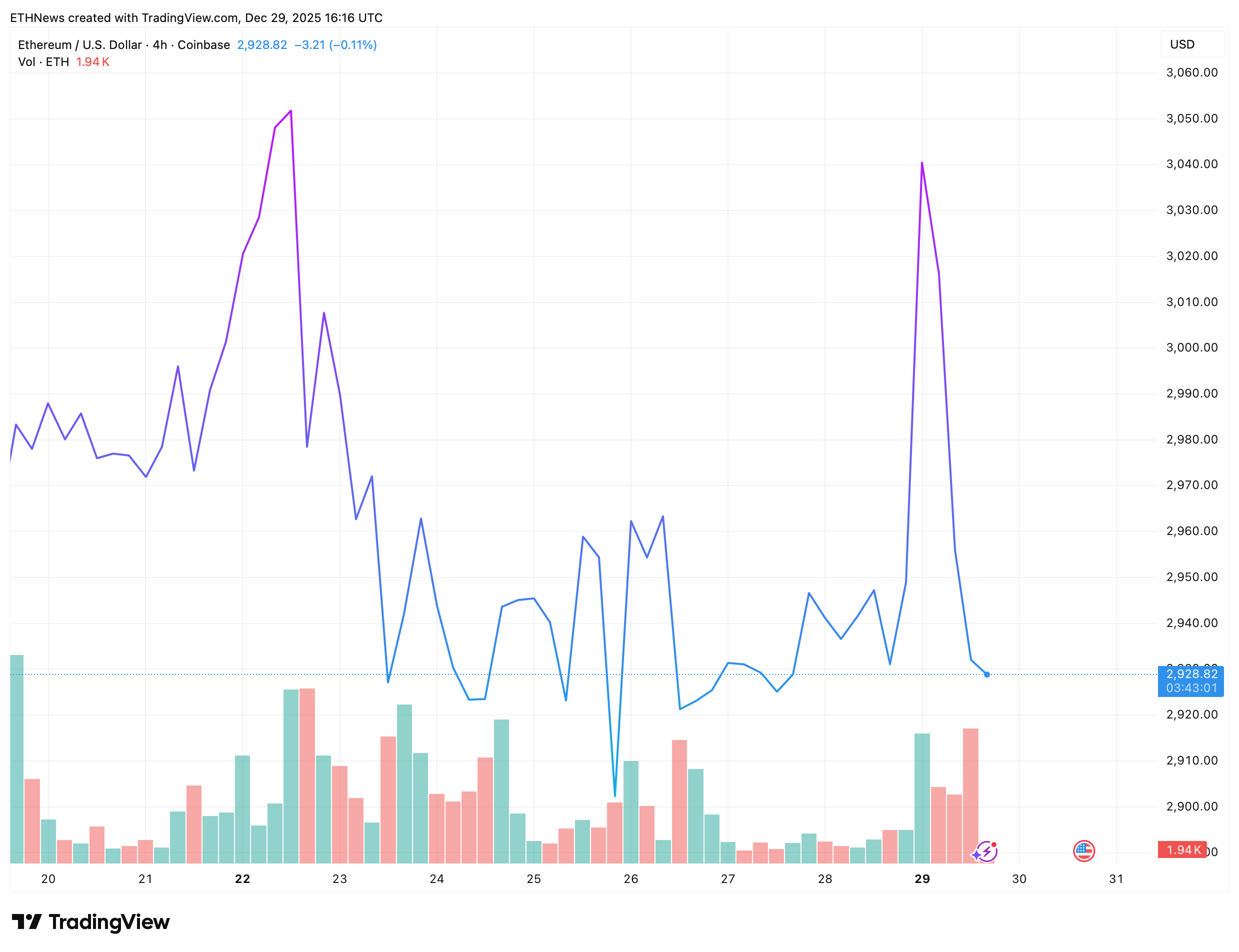 For now, Ethereum remains coiled near $2,928, compressed between opposing forces. With volatility already contracted, the next breakout or breakdown is likely to carry outsized impact, potentially setting the tone for Ethereum’s direction into early 2026.