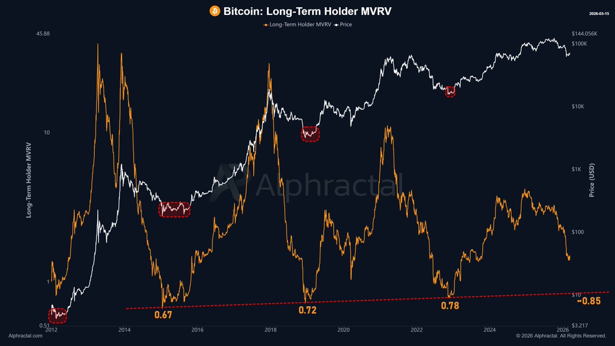 Every Bitcoin Cycle Has Bottomed at a Higher Long-Term Holder MVRV — The Pattern Now Points to 0.85